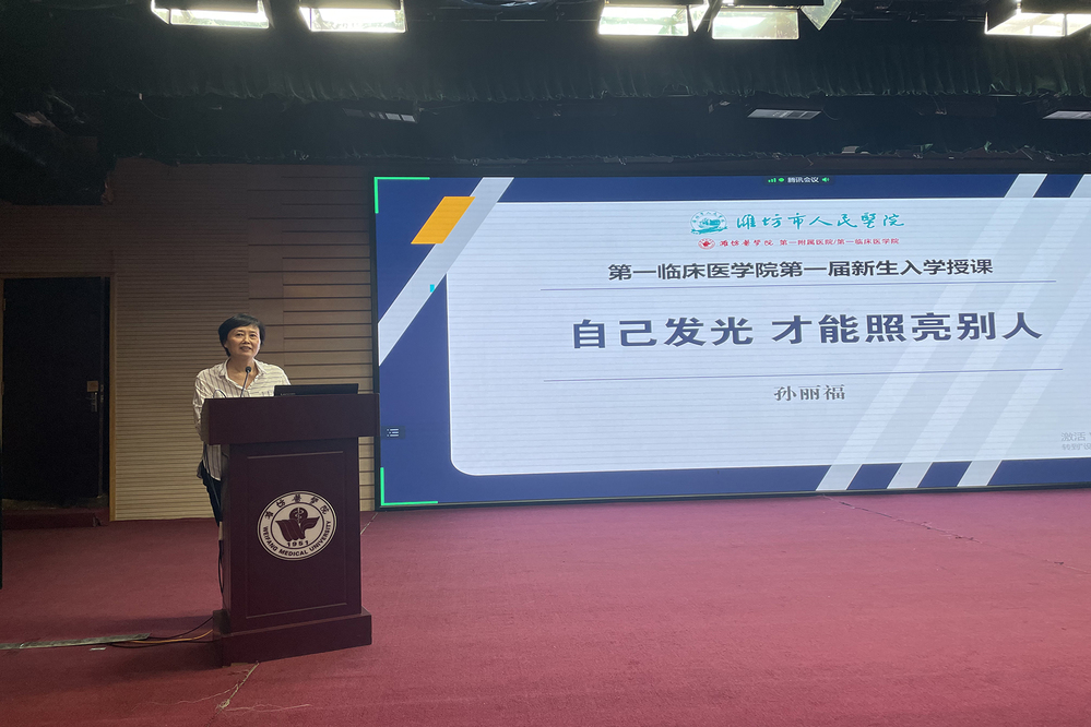 会上,教师代表刘海霞为同学们临床学习给出了指导;副院长胡强讲解了人民医院的教学特色,给同学们指出了学习的方向;院长孙丽福介绍了人民医院历史沿革,给同学们大学生活提出了五点要求;党委书记丁木金强调了本科阶段的培养目标,希望同学们养成良好习惯,坚持体育锻炼,树立正确恋爱观,实现自己的理想。