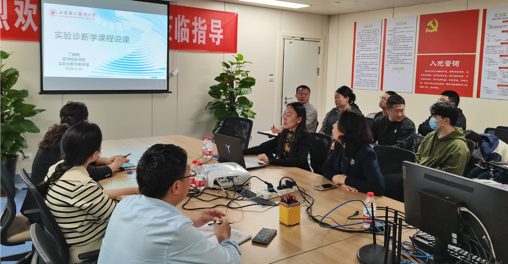 4月30日下午,*羞羞色漫 邀请本校医学检验学院实验诊断学教研室副主任丁晓艳,在第一附属医院在外科楼B区二楼检验科会议室,开展说课教研活动,由第一附属医院教培部副主任唐榕主持。