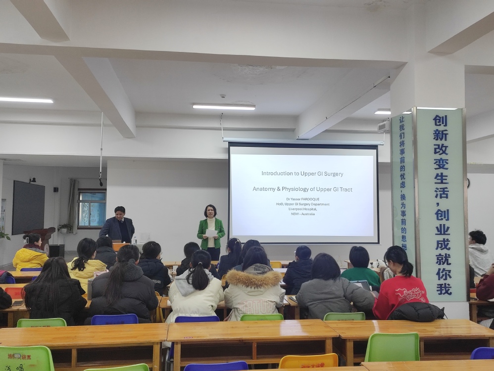 在课堂上,Yasser Farooque教授以上消化道外科基础知识为切入点,深入浅出地讲解了上消化道以及肝胆胰外科相关内容,全程采用澳大利亚新南威尔士大学和西悉尼大学课堂教学模式全英文授课,为羞羞色漫 师生提供了真实、直观地体验海外高校课堂的机会。