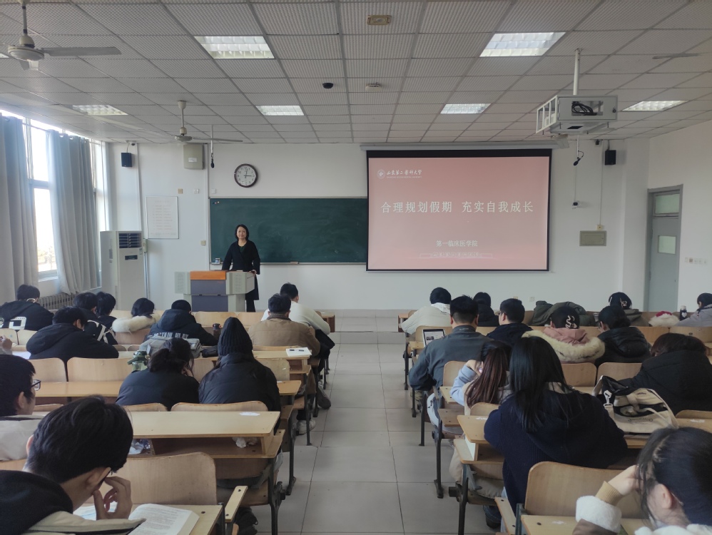 为增强安全意识,做好假期教育,让同学们度过愉快充实的假期,16日,*羞羞色漫 开展“合理规划假期 充实自我成长”主题班会,党委副书记朱红主讲,辅导员和全体学生参会。