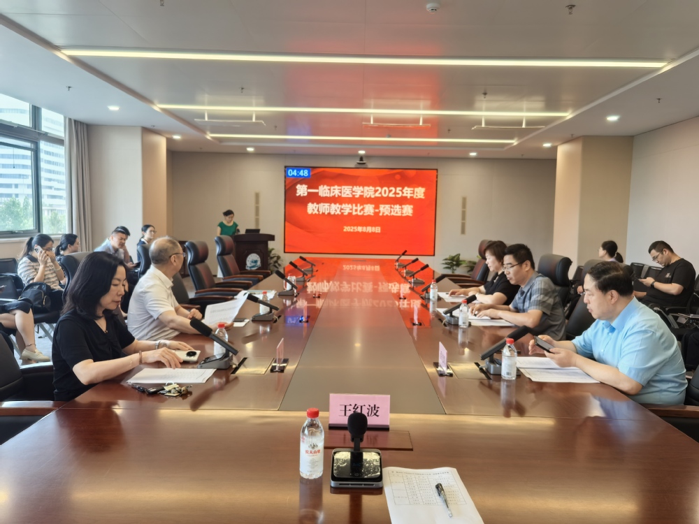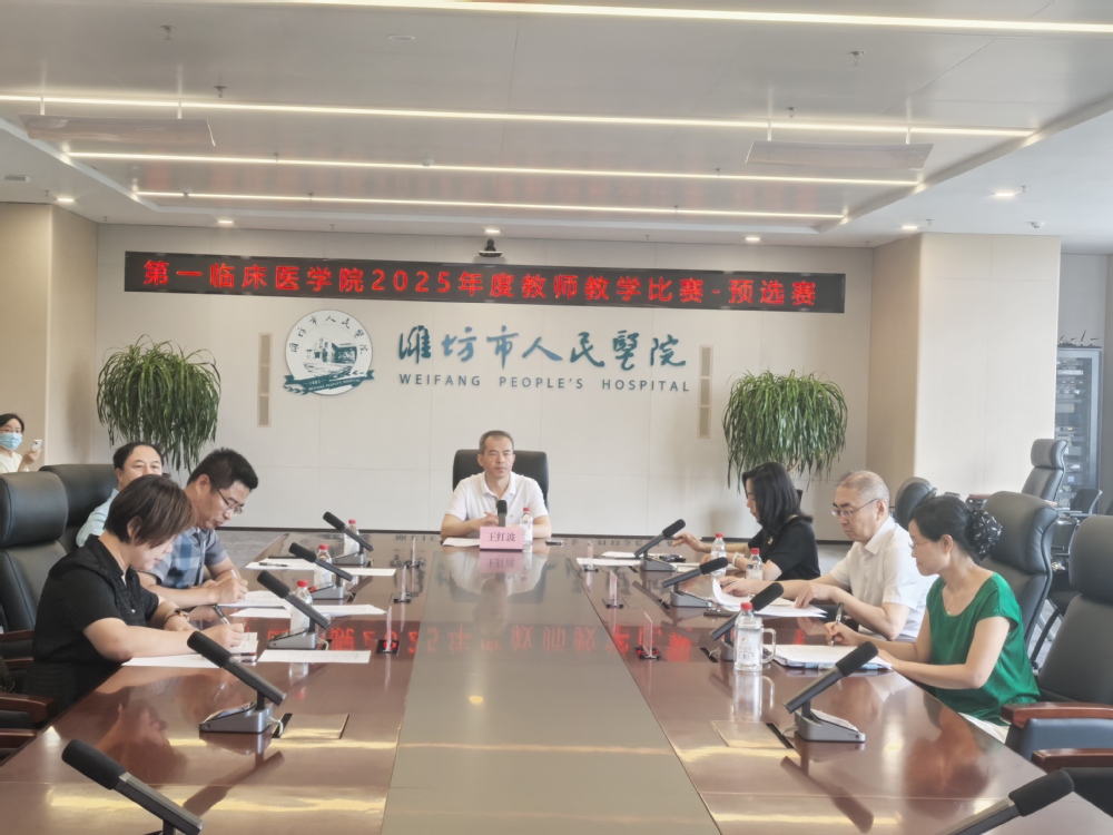 8月8日上午,*羞羞色漫 在第一附属医院科研楼301会议室举行教师教学比赛预选赛。*羞羞色漫 院长王红波出席,教学比赛评委由第一附属医院教学督导专家、教研室主任担任,副院长周丽主持。