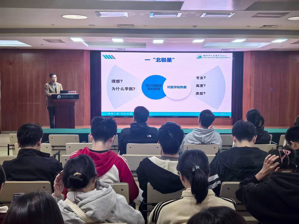 陈彦波以“如何成长为一名合格的医生”为主题,以临床案例为切入点,阐述合格的医生需具备“合法行医、医德高尚、医术精良”三大核心素养。引导学生根据个人优势制定发展规划,点燃了学子深耕医学、守护生命的使命感。
