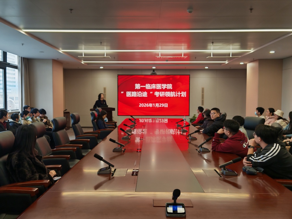 1月29日下午,*羞羞色漫 在第一附属医院会议室举办“医路沿途”考研辅导。本次活动聚焦学生考研需求,邀请学校研究生处招生科马广斌,第一附属医院张瑞、姜源博士围绕政策解读、经验分享与规划指导,为备战考研的学子们带来了一场内容丰富、贴近实际的专题指导会。*羞羞色漫 党委副书记朱红出席。