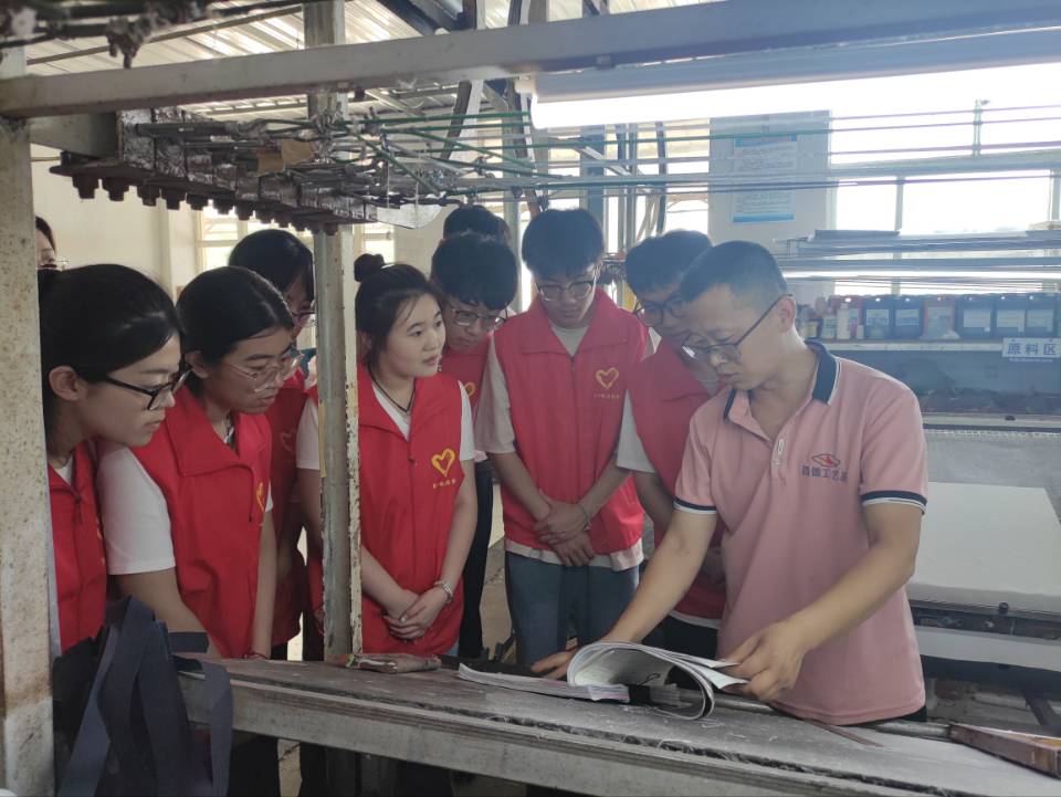 访企助农助宣传,经济振兴新动力。志愿服务队走进乡间,参观种植大棚园区和西葫芦展馆,从育种播种和实物展示等方面了解当地特色农业,塑造特色形象,打造品牌效应;赴昌德购物袋加工厂了解返乡青年孙明浩创业初衷,志愿者现场体验裁剪、印刷、缝纫、包装等技术,感受客户沟通、产品制作的亲力亲为,学习创业精神,激励同学们敢为人先,勇于闯出自己一片天地。